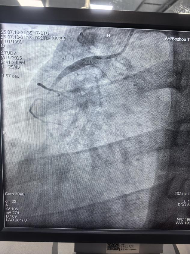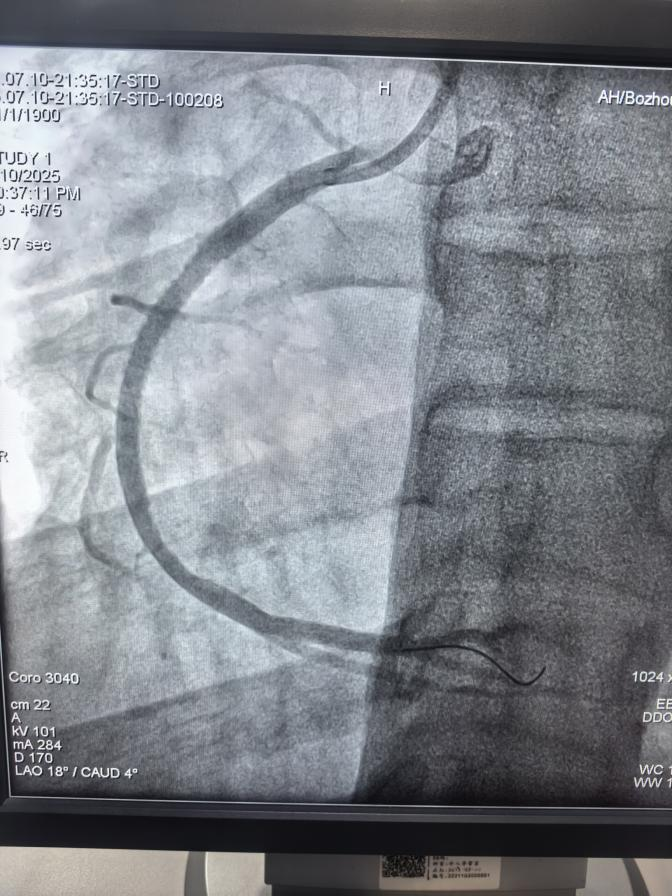 患者馮先生身高170cm,體重95kg,體型較為肥胖,平時作息不規(guī)律,長期抽煙、飲酒、熬夜,當(dāng)天突發(fā)心前區(qū)疼痛持續(xù)不能緩解,伴有大汗淋漓、煩躁不安,通過呼叫120救護(hù)車送至我院胸痛中心。心血管病科二病區(qū)介入醫(yī)生給他做了急診冠脈造影檢查,顯示右冠狀動脈近段急性完全閉塞。經(jīng)過手術(shù)醫(yī)生積極有序的救治,順利開通閉塞血管后,在血管內(nèi)超聲指引下精確植入一枚藥物洗脫支架,植入后血流恢復(fù)良好,馮先生癥狀明顯改善,生命體征逐漸平穩(wěn)。術(shù)后身體恢復(fù)良好,于7月20日順利出院。