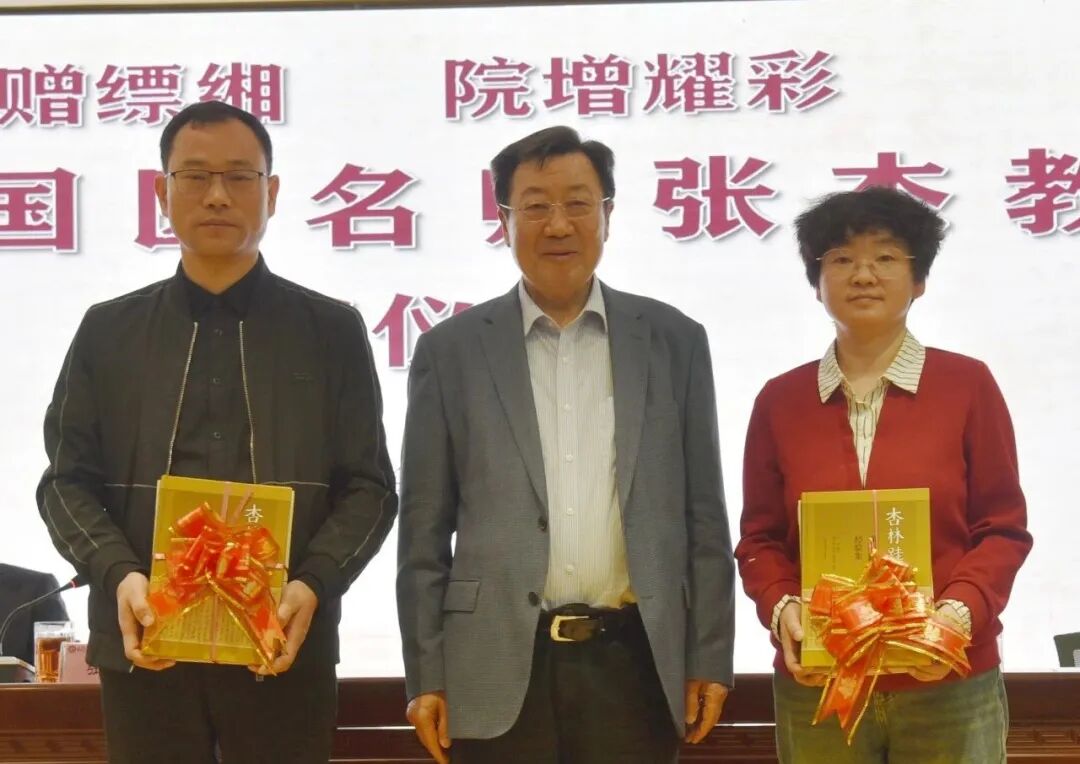張杰教授將臨床診療經(jīng)驗(yàn)和盤托出,凝練形成《杏林跬步——張杰臨證醫(yī)案經(jīng)驗(yàn)集》《杏林積銖——張杰臨證驗(yàn)案輯錄》《杏林述真——張杰內(nèi)科臨證擷英》系列叢書,對(duì)中醫(yī)藥的傳承和發(fā)展具有重要價(jià)值。現(xiàn)場(chǎng),張杰教授將50套書贈(zèng)與我院,唐超、楊歡及弟子代表接受贈(zèng)與。